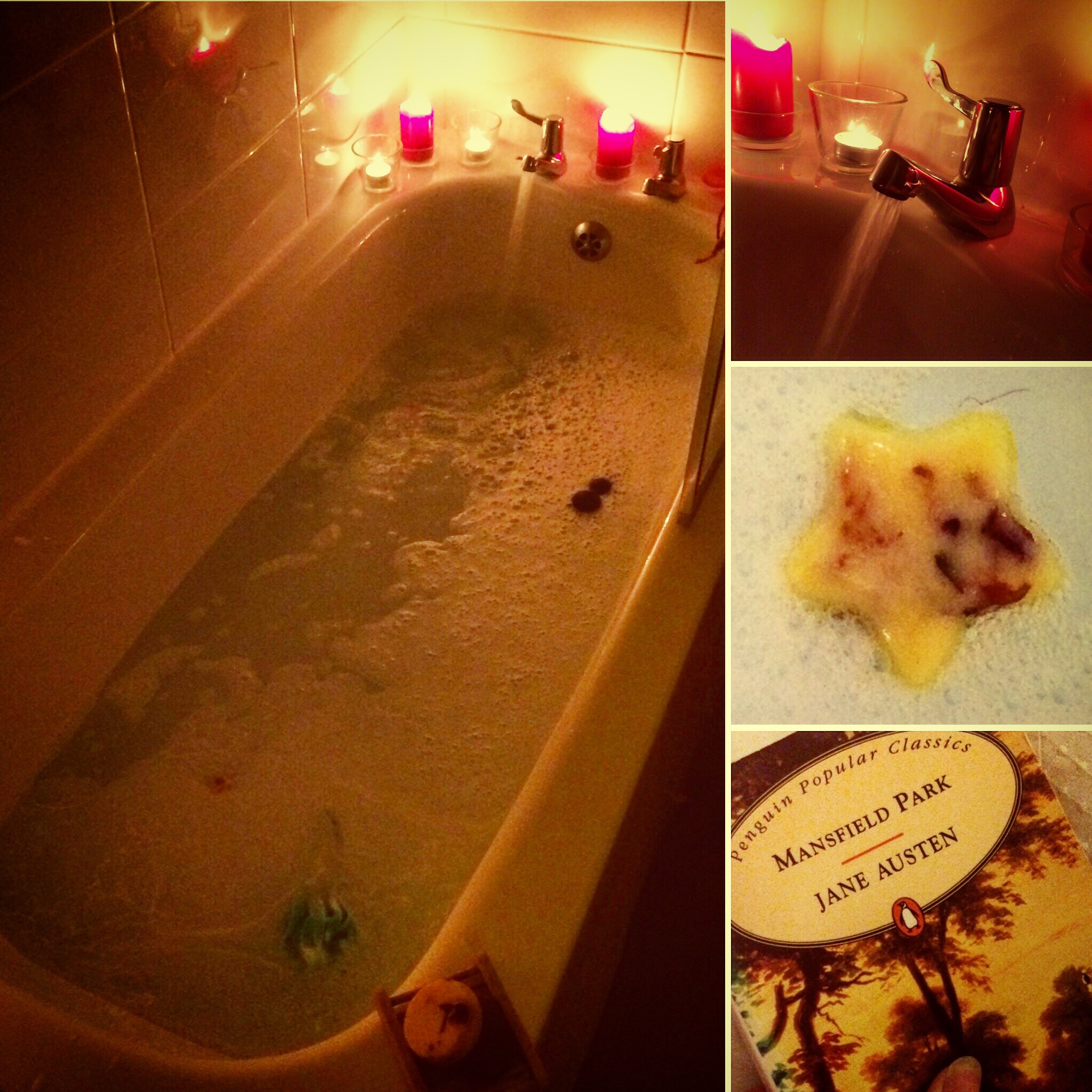 I just love to have a candle lit bath, with a handmade bath melt or bomb, and a classic Austen book I’ve read a million times before.