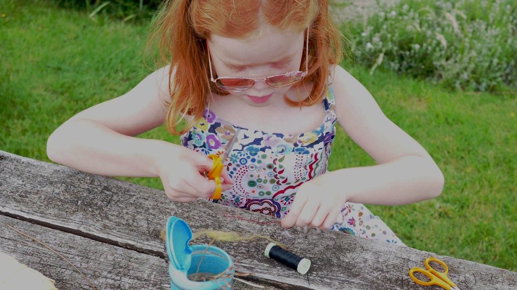 We dyed the natural sheepswool orange using onion skins. It’s so easy – I’ve never used a natural dye before but this is so simple.