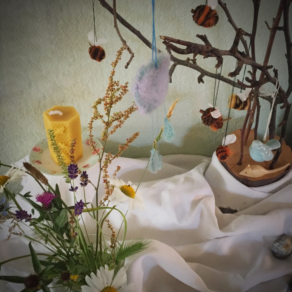 The bees were such fun to make. I was inspired by ideas from the book All Year Round which I review in an earlier blog post. The bees have really added to our seasonal table – it is looking lovely and summery!