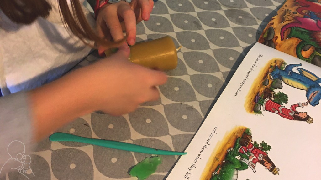 We spend the afternoon making conker dragons using the instructions in All Year Round, decorating beeswax candles with firey dragons to burn at dinner, and sharing A Michaelmas story from Bedtime Storytelling (Floris Books).