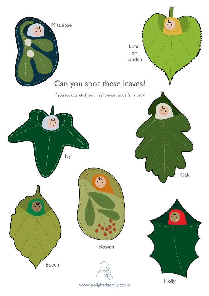 My leaf baby dolls are very popular – do you have one? If so, you could take her out on the walk with you to spot the leaves and hunt for leaf ‘fairy’ babies hiding in the trees. If not any doll can join your child on the adventure – perhaps you can taken them in a dolly sling made from a scarf?