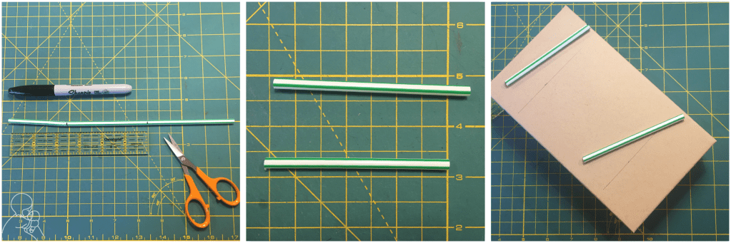 • Take your straw and cut two equal lengths – for my box they were 3.5” long.
