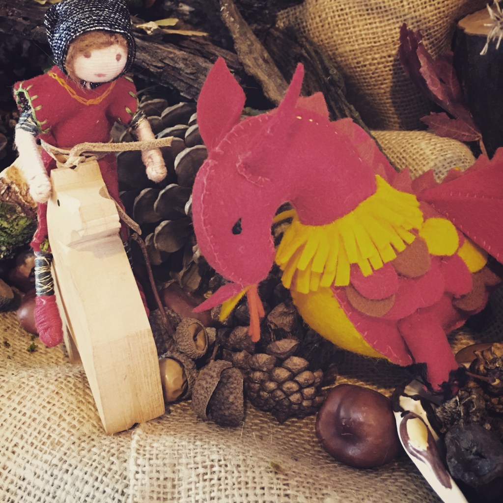 We will also make seasonal crafts to add to the store – such as corn dollies, fire gnomes and leaf bunting. At Michaelmas we also have a visit from a dragon and St Michael!
