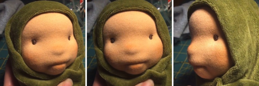 For her body I used the pattern from Maria, but chunked her up a little – as a studier doll would better reflect my daughter. This doll is assembled differently, with the legs and arms applied after the body is stuffed. I do like this technique as the doll can move easier – and I planning to use it in my new Emily and Joseph dolls.